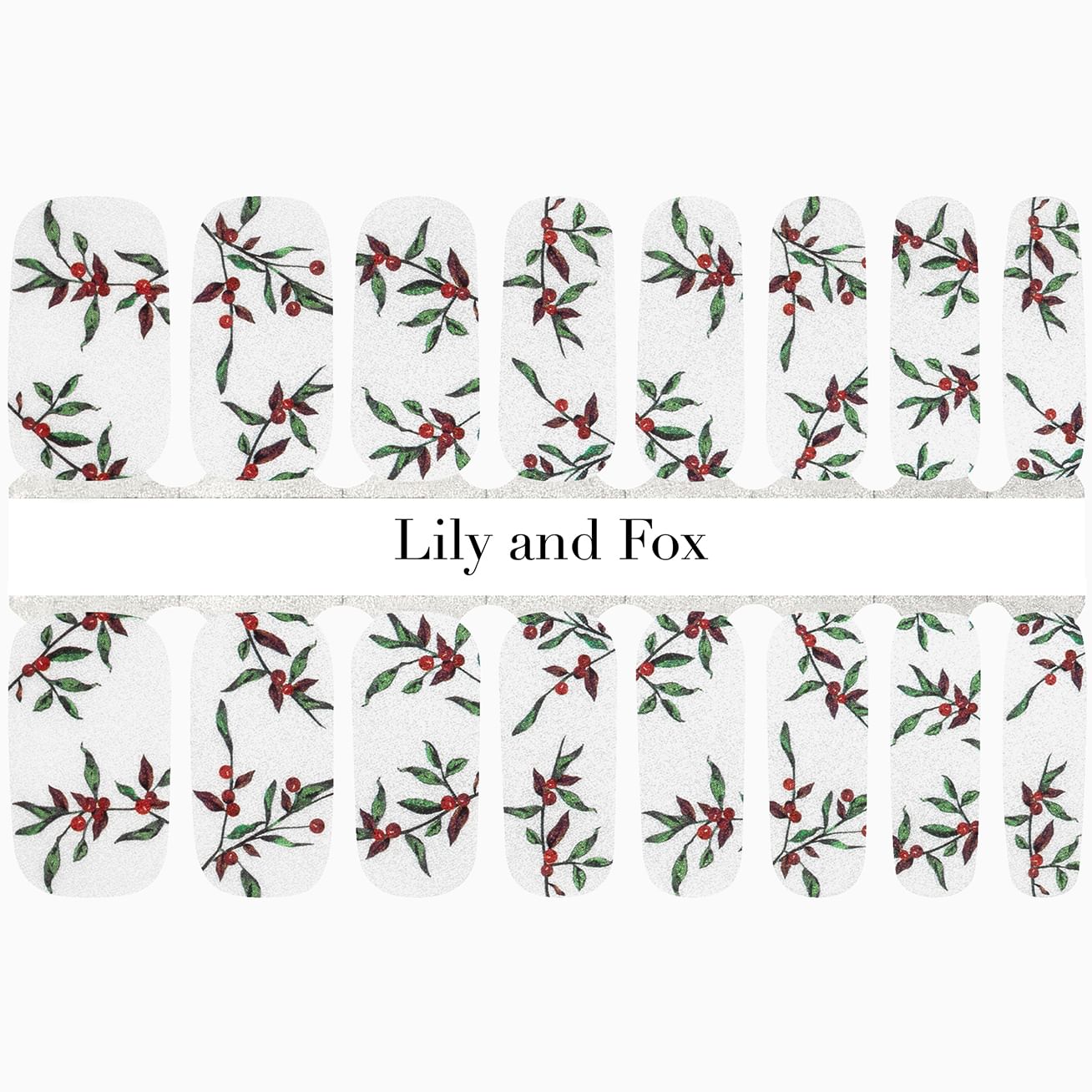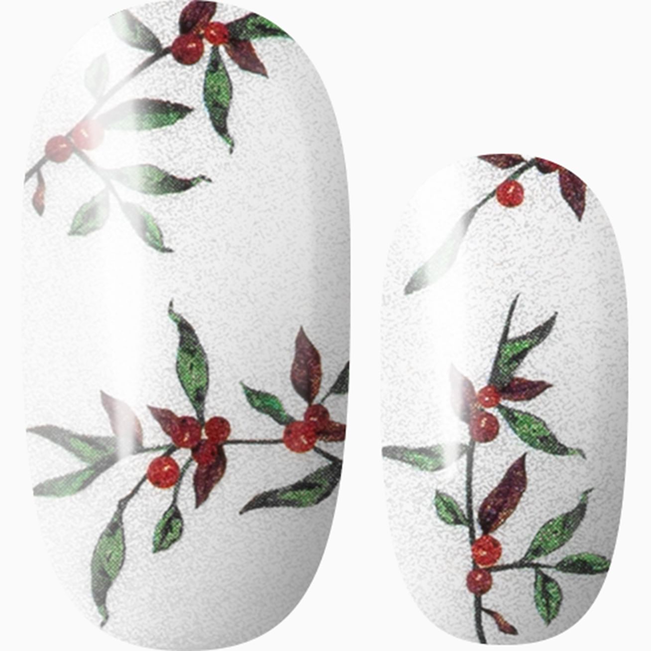 Tis the Season to Bloom features bright holly sprigs against a white background. This pearlescent design shimmers beautifully giving a snow-kissed appearance. Add a layer of top coat to keep your fingers decked with boughs of holly a little longer.