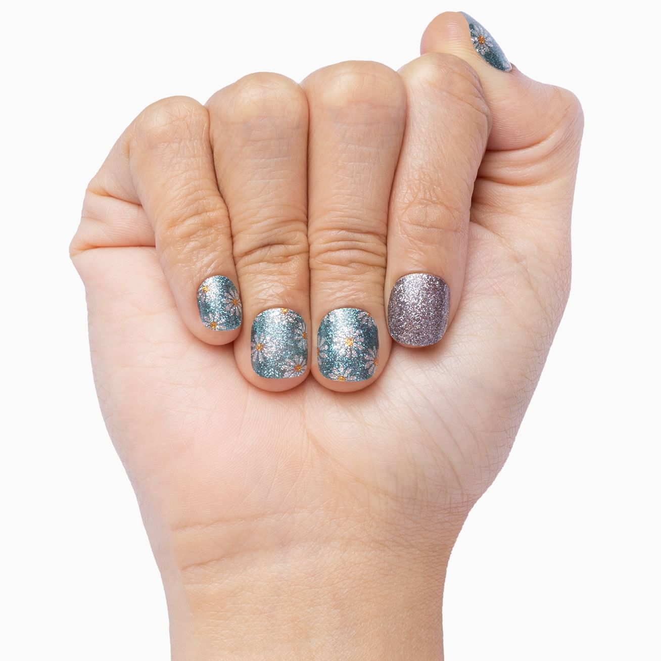 Calling all mermaids! This wrap's for you with its glossy aqua background covered in iridescent glitter, more glitter, and even bigger glitter. With big glitter, we highly recommend adding a layer of top coat to protect this look for extended wear.