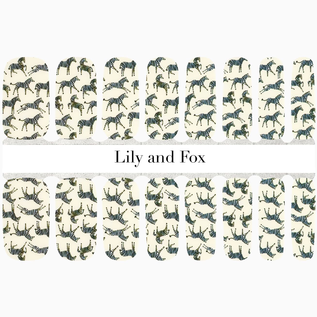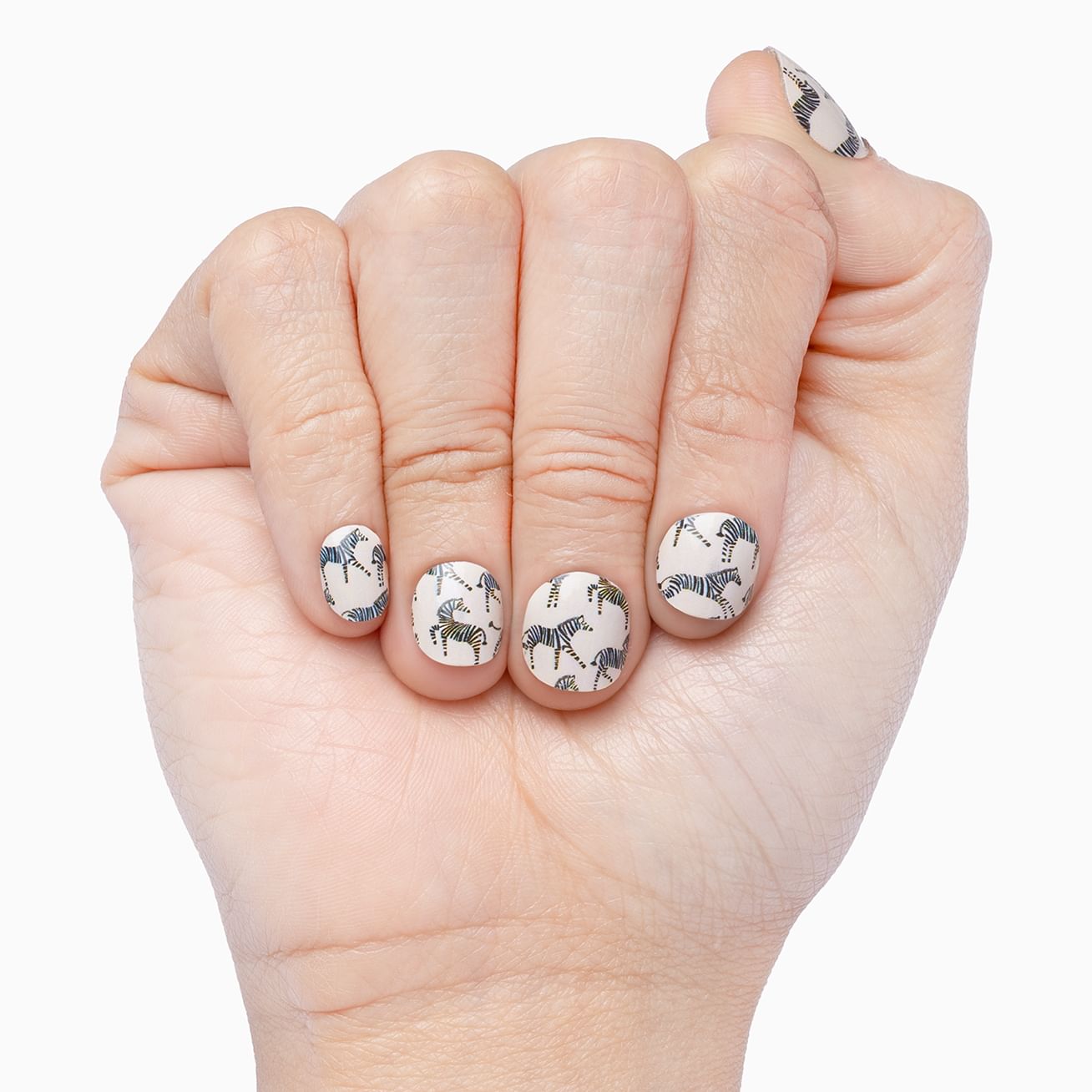 Why settle for zebra stripes when you can let your imagination and manicure run wild with a dazzle of zebras? Yes, we had to google, "what do you call a group of zebras?" and are delighted by this fun fact. This is a literal safari for your fingers with zebras on the move across a glossy, cream background. Keep this mani running longer by adding a layer of top coat.