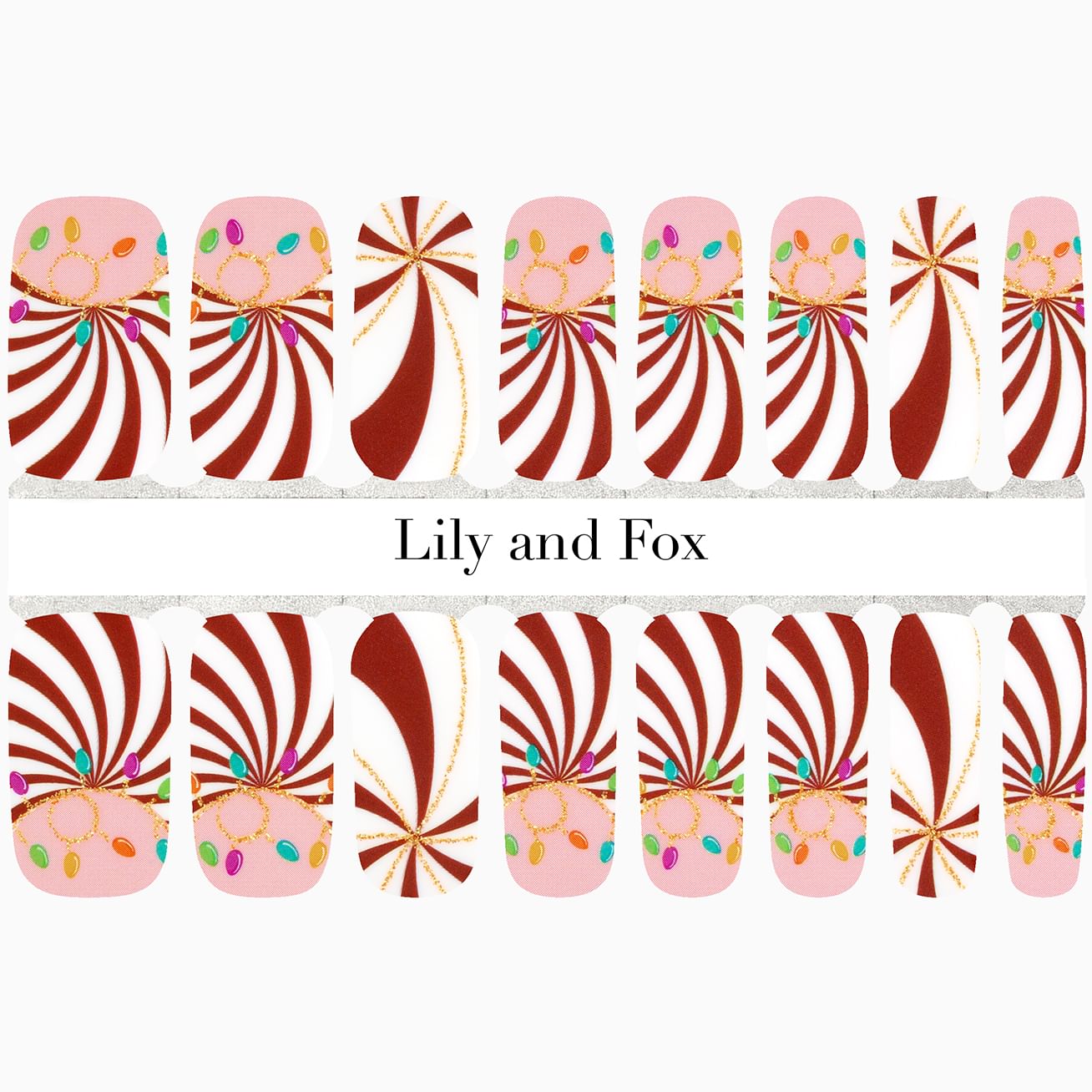 Cane You Be Mine? Yes, yes, you cane be my candy-cane-striped dream manicure! This festive nail wrap set is perfect for short and long nails, featuring metallic red stripes against a glossy white background. Keep your mani fresh by adding a layer of top coat.