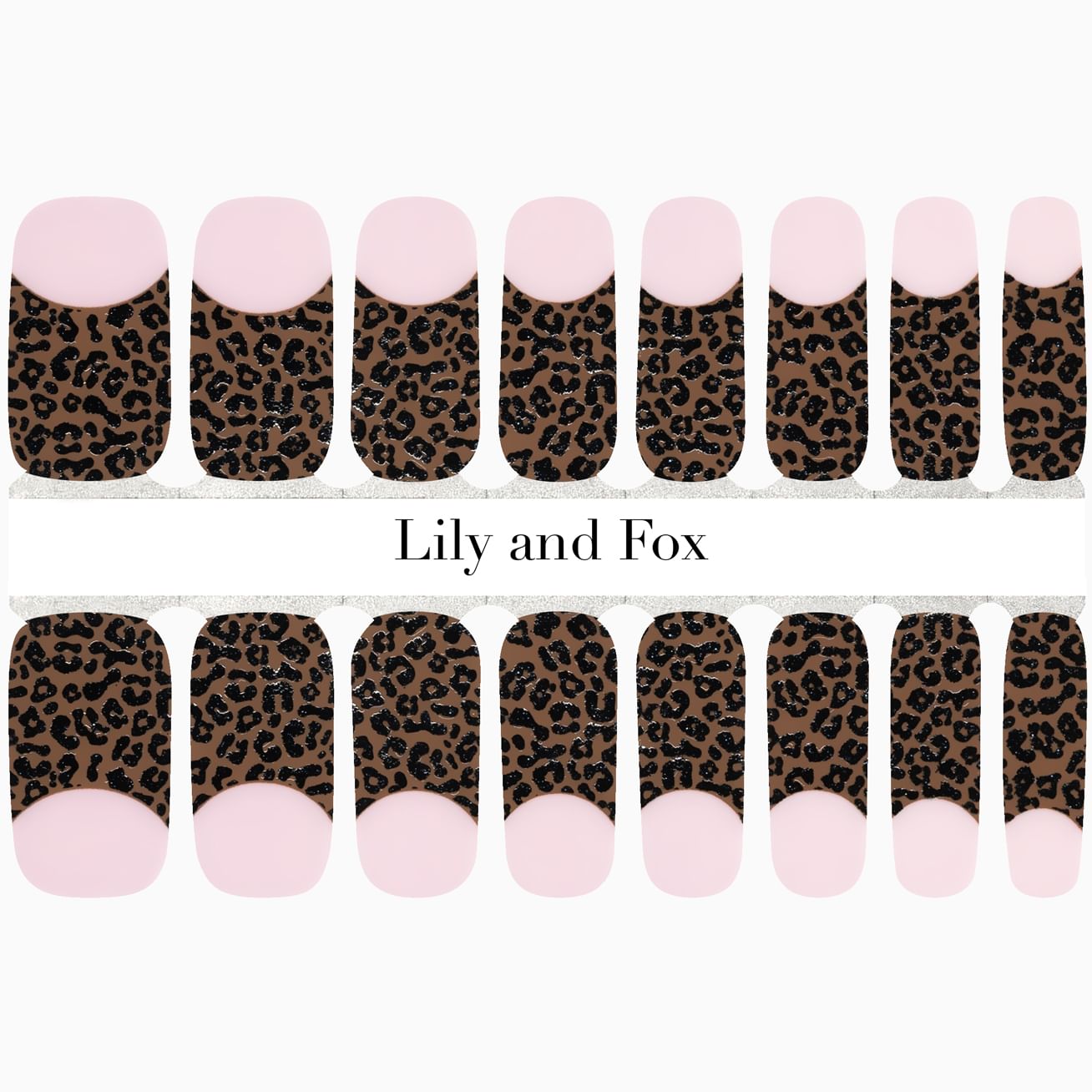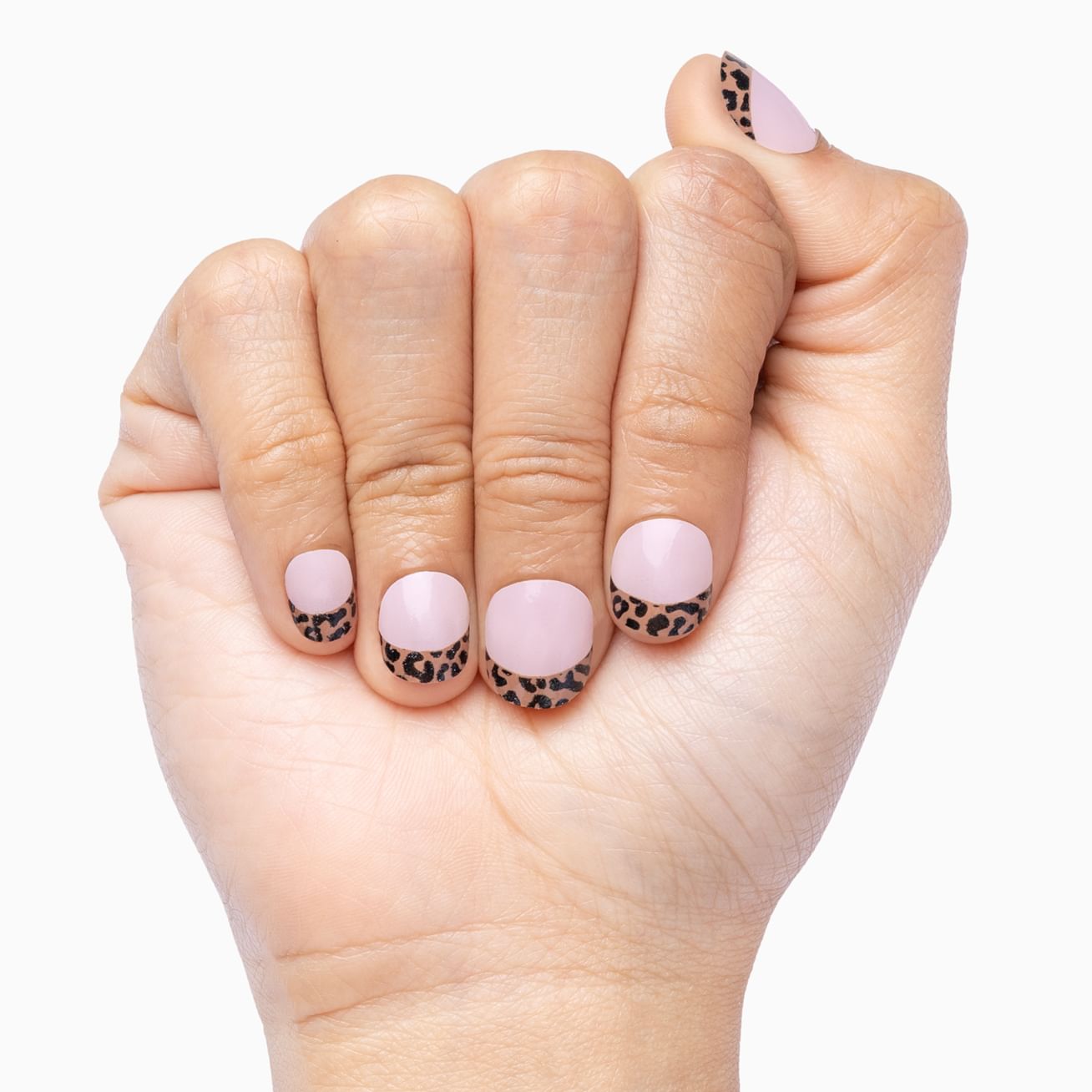 Go just a little wild, girls, with this pale pink translucent manicure with a mocha cheetah print French tip. This is a perfect look for short nails. Feeling a little extra spicy? Turn the design upside down to mix in some full cheetah accent nails.
