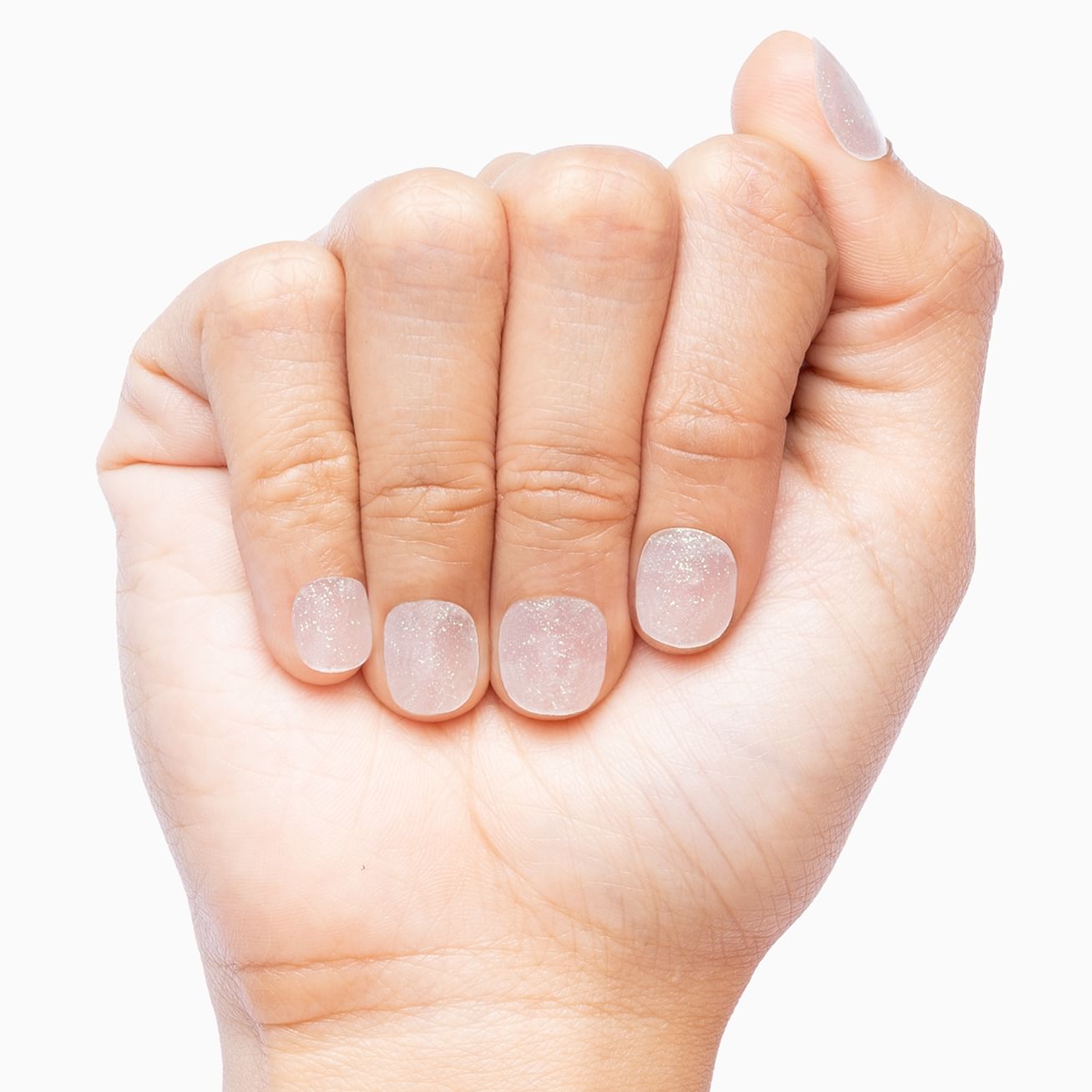 You'll have snow much fun mixing and matching this glittery, transparent wrap to elevate any mixed-mani look. Or even layer on a golden French tip. Seriously, make this mani your own, you deserve it! This look is so versatile for every nail length. Keep the glitter going by adding a layer of top coat.