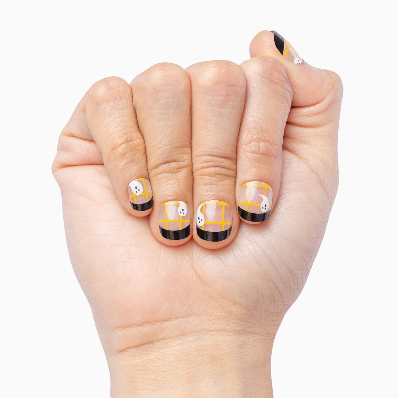 Wrap up your nails in cozy Christmas Pajamas, featuring a glossy red and black buffalo plaid background with snowflakes and playful transparent stripes to give a peek at your natural nails. Apply in minutes for a mani that gives Christmas morning vibes for weeks.