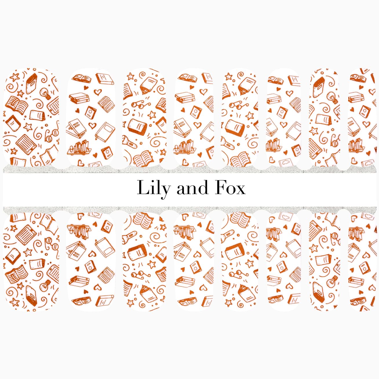 The only thing that can get between you and one more chapter in your book may be One More Chapter on your fingernails! Dare to be distracted by the gorgeous copper metallic pattern with books, eReaders, stars, swirls, and spectacles that will bemuse your inner bibliophile. Don't worry about smearing wet polish on your pages or chipping a nail while tearing into your next page turner with these easy-to-apply, long-lasting nail wraps.