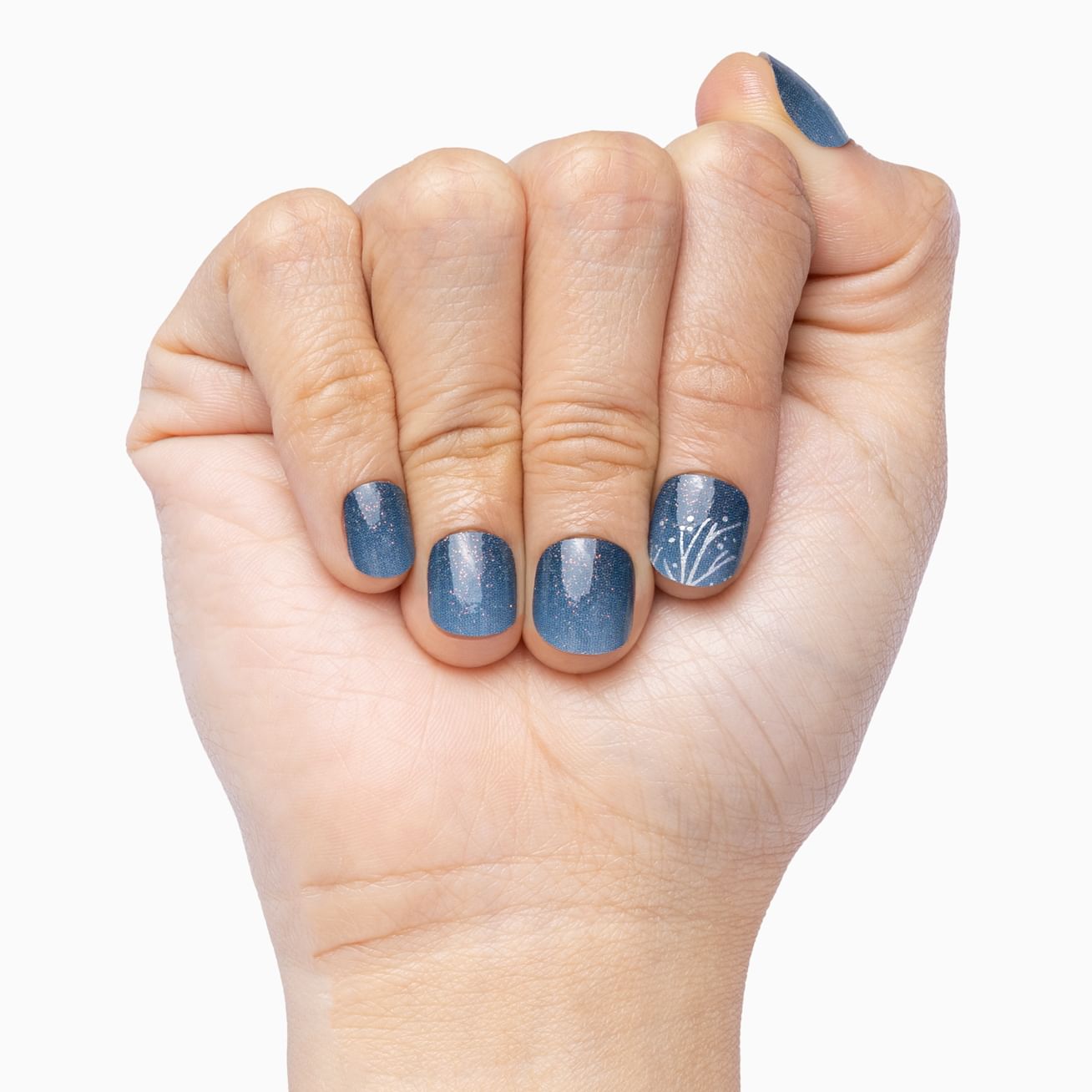 Whispers of Winter features a delicate wintry white branch set against an ombre of dark to pale blue - mix and match the orientation for two completely different looks! Sparse red glitter adds just the right amount of sparkle to this stunning set. Apply in minutes, enjoy for weeks.