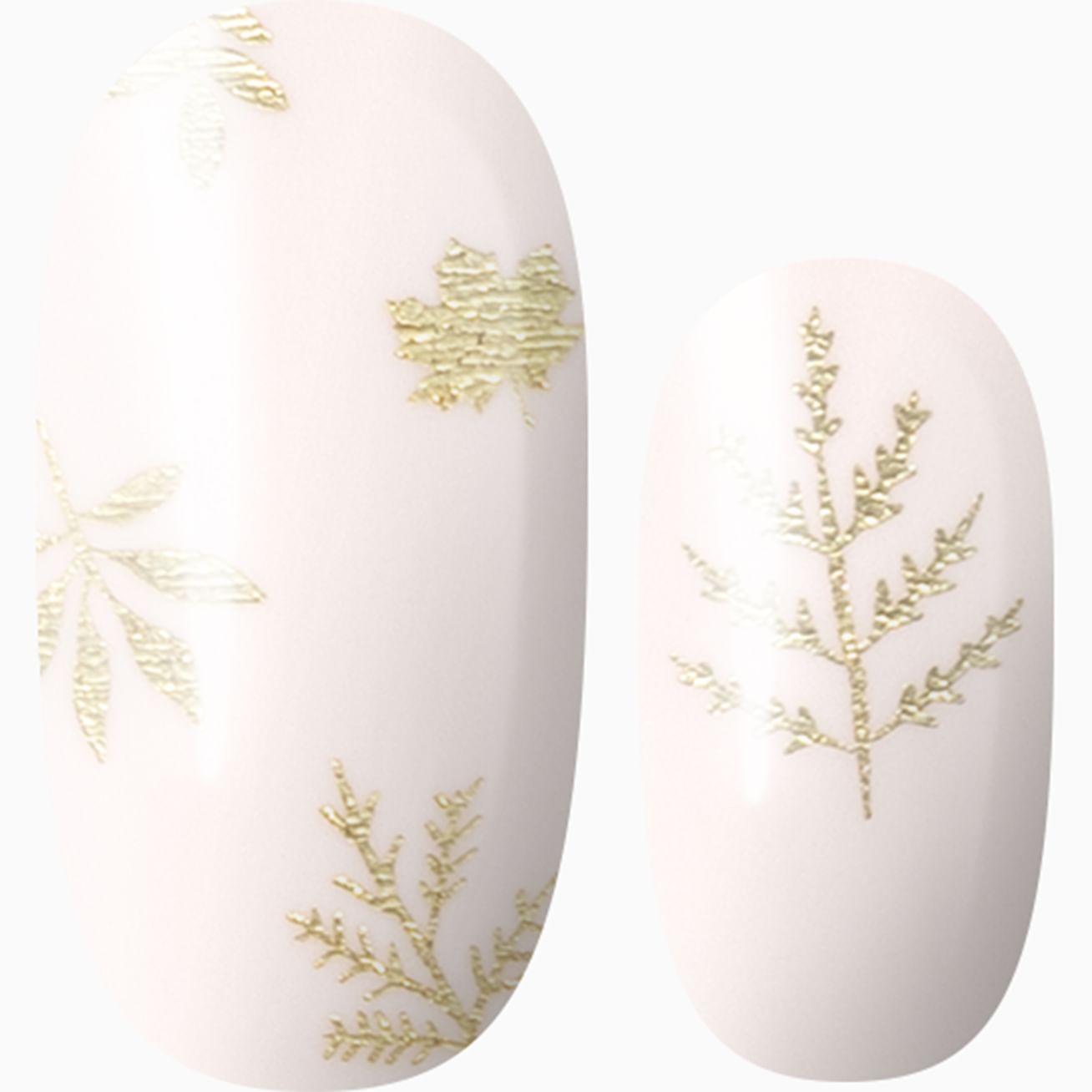 Gilded Petals is a golden delight with pale pink flowers that look hand-painted outlined in metallic gold against a glossy white to warm salmon pink ombré. The placement of the flowers against the cuticle is perfect for a peek of petal on short nails and additional floral arrangement on long nails. Protect this precious look with a layer of top coat.