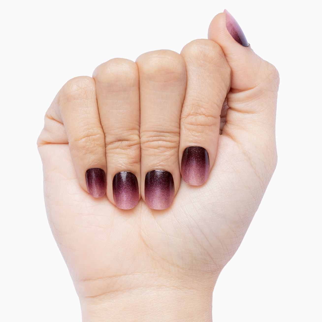 This cranberry crushes it with a gorgeous inky black-purple to light pink pearlescent ombré. The reviews are in and customers rave about this look and its dreamy finish on short and long nails alike. Keep this look going strong by adding a layer of top coat.